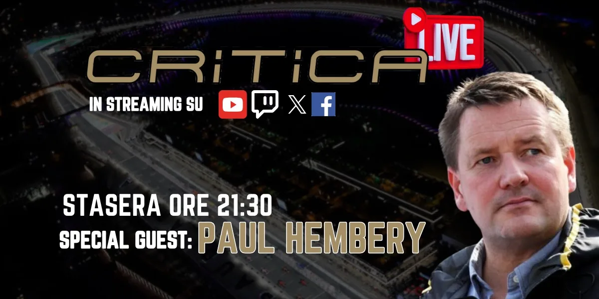Collegati su CriticaLive per una serata di analisi tecnica, aneddoti e strategie con Paul Hembery!