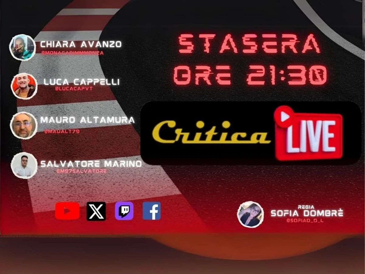 L’appuntamento è stasera alle 21:30, in diretta sui canali di Formulacritica: