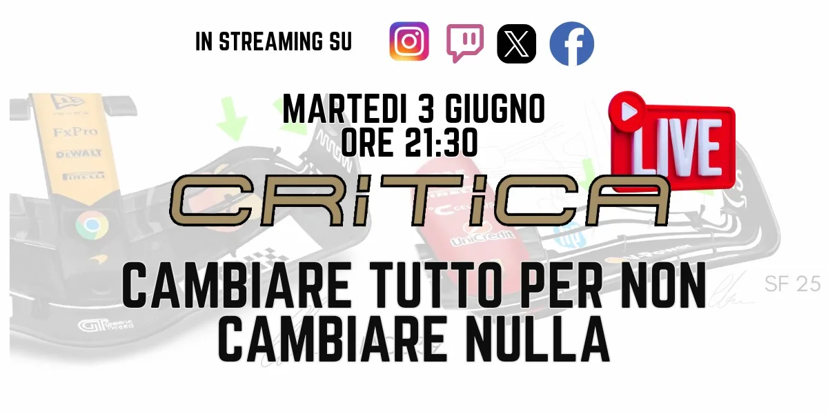 L’appuntamento è stasera alle 21:30, in diretta sui canali di Formulacritica: