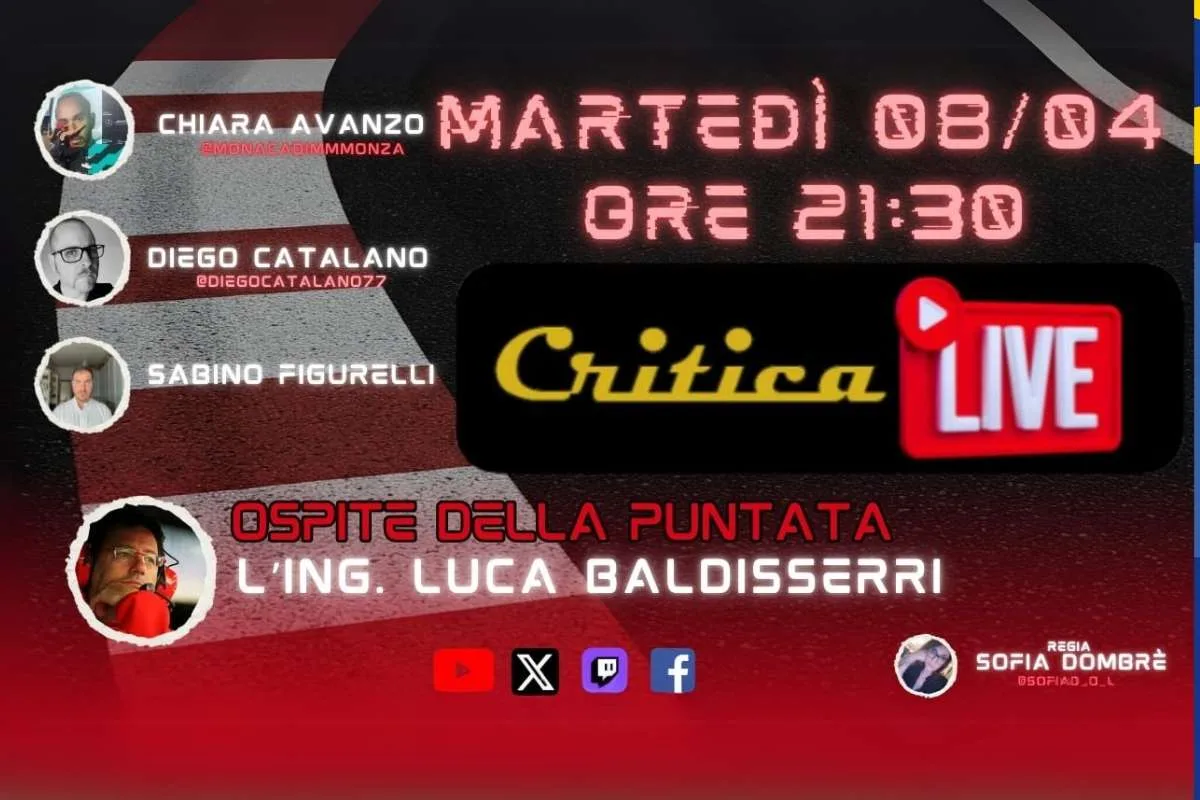 Stasera, martedì 8 aprile alle 21:30, su CriticaLive, analizziamo tutto questo con uno degli ospiti più attesi dai nostri ascoltatori: l’Ing. Luca Baldisserri, che con la sua esperienza e i dati alla mano, ci guiderà nell’autopsia tecnica della SF-25 e nei punti chiave del weekend giapponese.