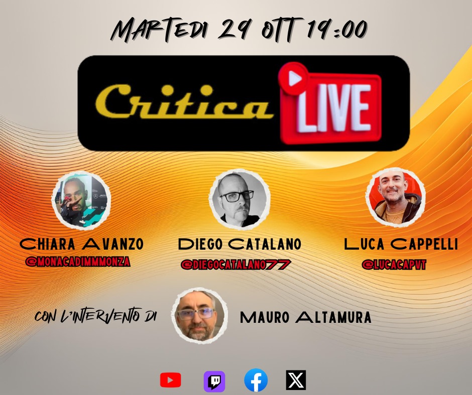 Questa live non è la solita analisi asettica. CriticaLive è analisi, intrattenimento e passione, condita da quell’ironia che rende tutto più godibile. Se ami il motorsport, questa live è per te: discuteremo dei temi più caldi del GP, scopriremo dettagli che forse ti sono sfuggiti e, perché no, ci faremo anche qualche risata.