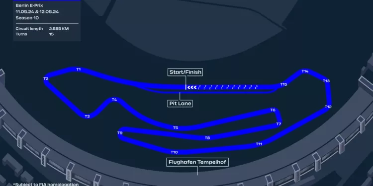 Il circuito cittadino dell’aeroporto di Berlino – Tempelhof, è situato presso l’omonimo impianto. È usato dalle monoposto elettriche fin dalla prima edizione di questa categoria. Curiosità: non è stato utilizzato in una sola edizione per accogliere i migranti.