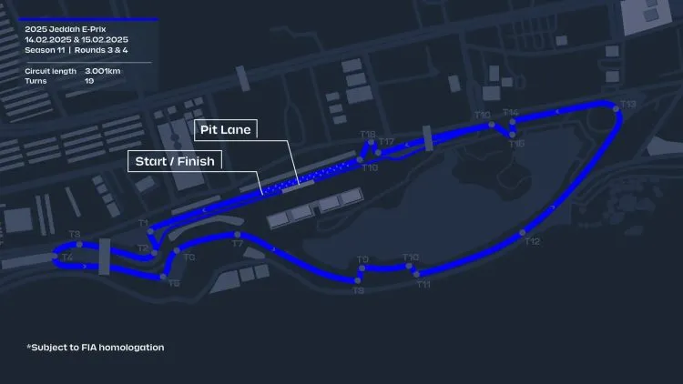 E-Prix Jeddah – A partire dalla stagione 2024-2025, la Formula E arriva a Jeddah, in Arabia Saudita, a “Jeddah Corniche Circuit“, già noto per il Gran Premio di F1. Per adattare il tracciato alle monoposto elettriche, gli organizzatori hanno introdotto alcune modifiche rispetto alla configurazione utilizzata in Formula 1.
