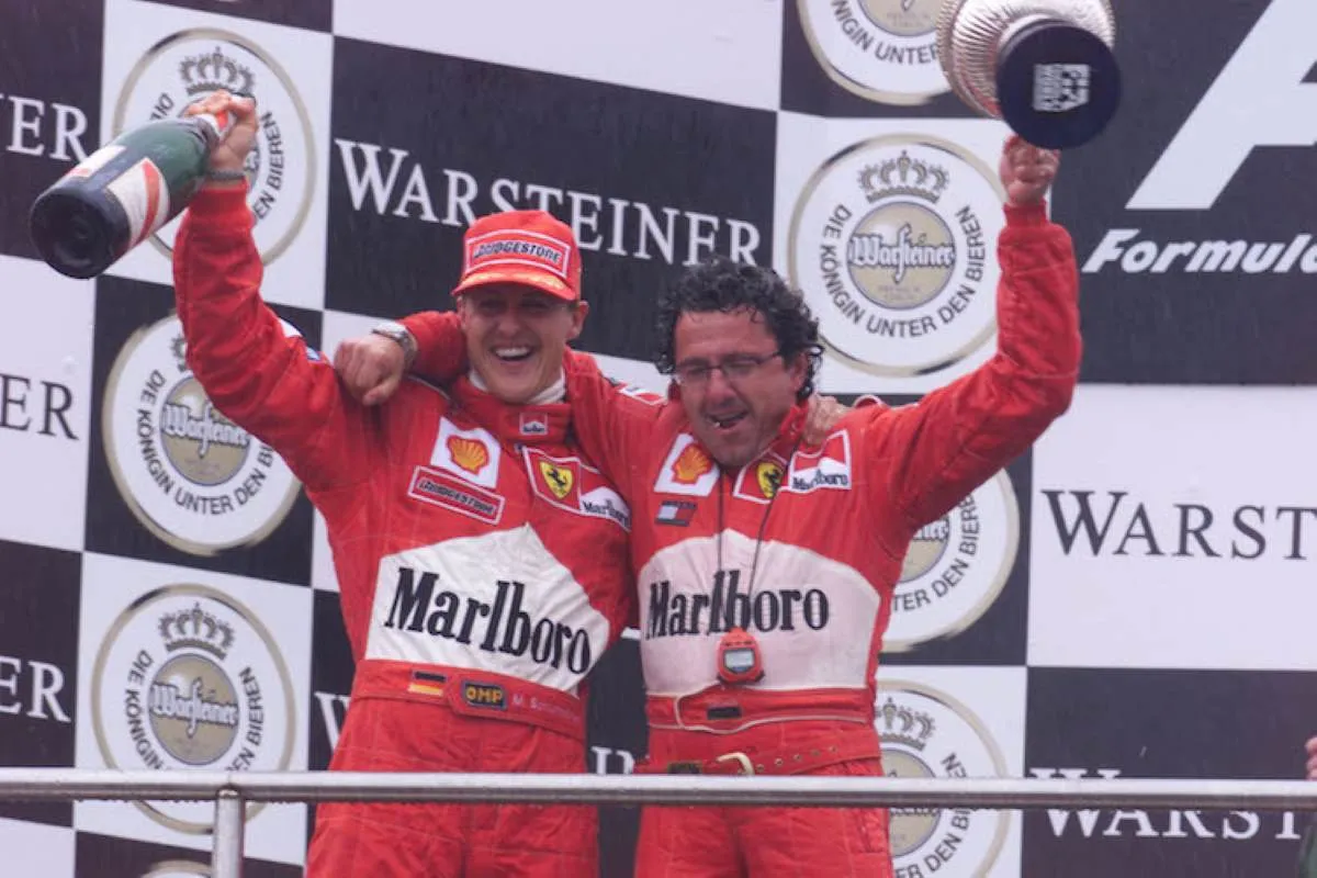 “L’organizzazione in Ferrari, come in tutti i team, prevedeva due race engineer e tutta una serie di personaggi che lavoravano con lui su una macchina e sull’altra. Con Michael lavoravo fianco a fianco, ma non direttamente sulla sua vettura. Quando poi è successo il problema nel ’99, quando ha avuto l’incidente a Silverstone e si è dovuto fermare – si era rotto la gamba, ecc. – io ho continuato a lavorare con Eddie. Abbiamo fatto molto bene e alla fine dell’anno, ricordo, mentre ero in vacanza in Messico, mi chiama Ross Brawn e mi dice: ‘Guarda, l’anno prossimo lavorerai con Michael’. Sai, la cosa ti fa piacere chiaramente, però in qualche modo ti responsabilizza di più”.