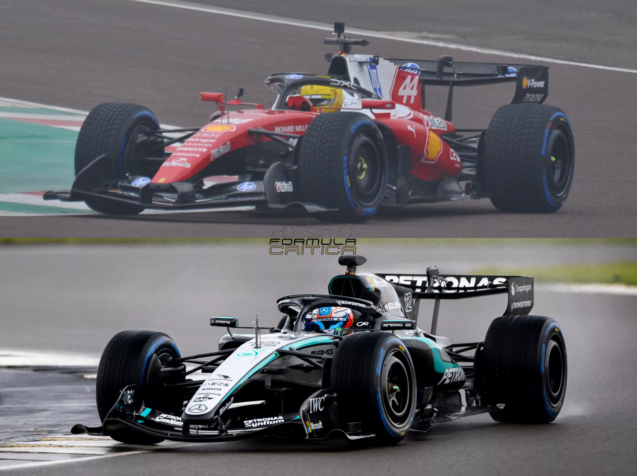 Osservando le vetture dal lato, la forma delle pance della SF-26 non è troppo distante da quella della W17, con delle evidenti differenze nella zona della Coca-Cola; da segnalare che la Ferrari è ancora caratterizzata dai cannoni. A livello di raffreddamento, le due impostazioni sembrano essere piuttosto discostanti: se la SF-26 è caratterizzata da un airscope di ridotte dimensioni, in modo da proteggere i flussi diretti verso il posteriore, la W17 presenta la classica presa tripartita.