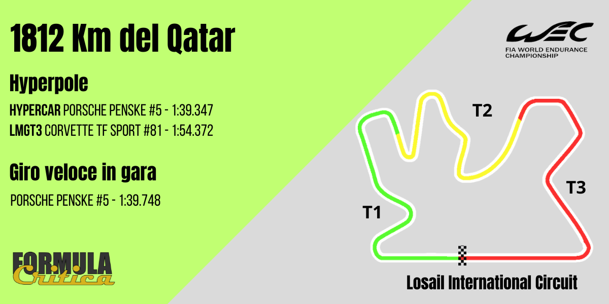 Il prologo e la prima tappa del campionato WEC 2025 si svolgeranno sul circuito internazionale di Losail in Qatar dal 21/02/25 al 22/02/25 e dal 26/02/2025 al 28/02/2025. Il circuito posizionato nelle vicinanze del centro abitato di Lusail, è lungo 5.419 mt e comprende 16 curve, di cui dieci a destra e sei a sinistra.