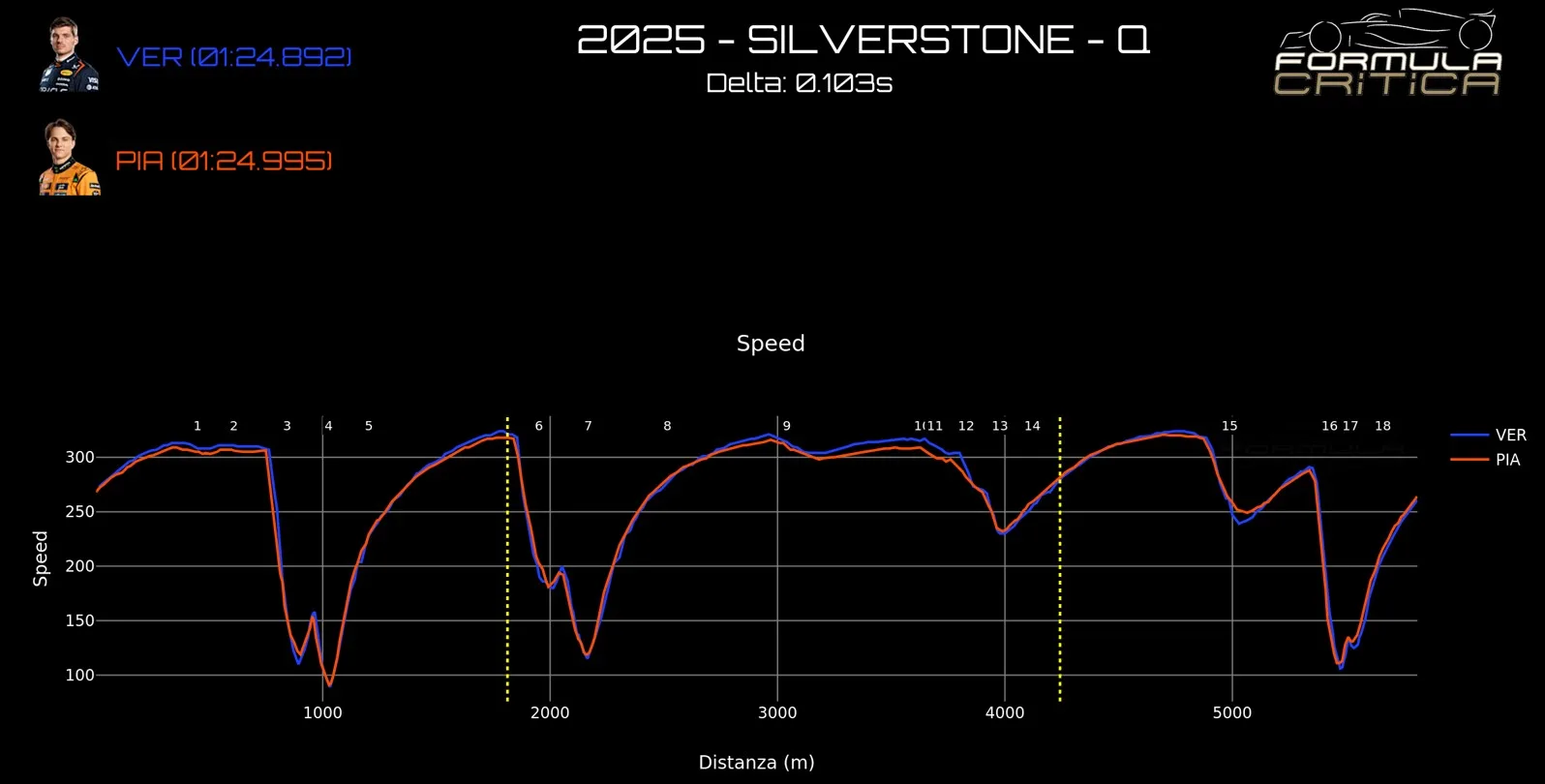Il Gran Premio di Gran Bretagna 2025 ha offerto una qualifica di grande intensità, con Max Verstappen capace di conquistare la pole position davanti a un concreto Oscar Piastri. Solo 103 millesimi hanno separato i due piloti al termine del giro secco, ma dietro questo distacco minimo si nascondono approcci profondamente diversi. Grazie alla telemetria completa dei loro giri, possiamo sviscerare curva per curva, metro dopo metro, le aree in cui l’olandese ha fatto la differenza rispetto al talento australiano della McLaren.