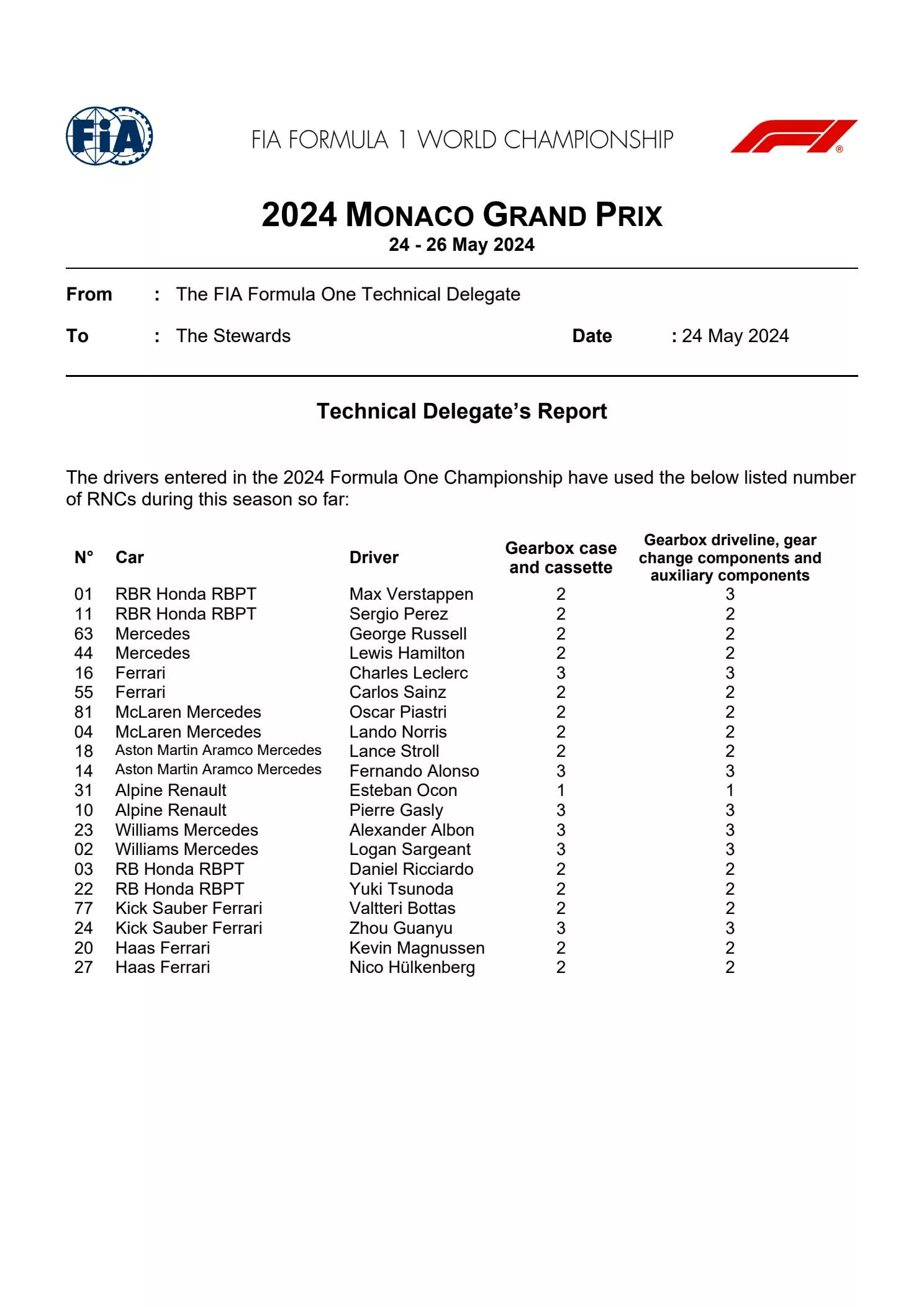 La FIA ha pubblicato l’elenco delle parti usate dei piloti in relazione alle trasmissioni e alla power unit. Nelle immagini in basso tutti i dettagli.