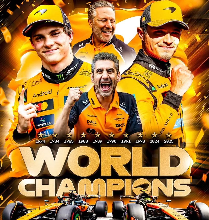 “Fantastici. La McLaren è un team incredibile, bravi tutti. Anche la leadership di Andrea Stella. Wow. Vincere due mondiali costruttori di fila è stato un lavoro di squadra fantastico. Vi ringrazio per tutto. Voglio spendere delle parole anche per i nostri due piloti. Hanno guidato in maniera eccezionale per tutta a stagione, senza di loro non saremmo mai stati in grado di arrivare a questo obiettivo. Li stiamo lasciando correre liberamente, anche se oggi sono andati un pò al limite, ma corrono sempre in modo pulito. Altre vittorie arriveranno”.