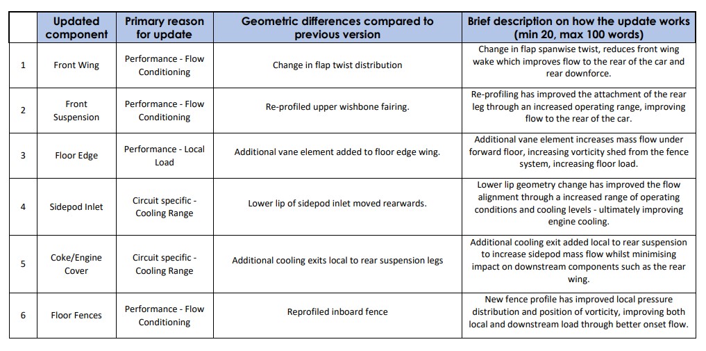 Vediamo ora le novità presentate dallo staff guidato da James Allison, avvalendoci dei documenti ufficiali pubblicati dalla Federazione Internazionale dell’Automobile il giovedì precedente al Gran Premio texano.